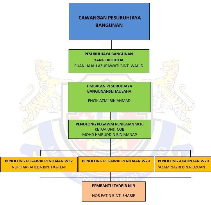 CARTA ORGANISASI UNIT PESURUHJAYA BANGUNAN (COB) DI JABATAN PENILAIAN, PENGURUSAN HARTA DAN UNIT PESURUHJAYA BANGUNAN.